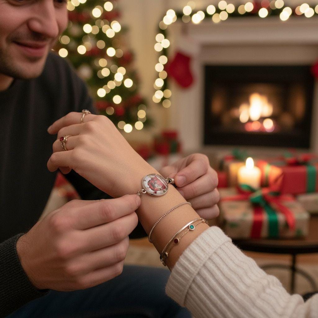 Embrace wearable art with this handmade resin bracelet featuring stunning gold leaf flakes and abstract red design! Crafted as an eco-friendly accessory using sustainable materials, this unique piece showcases luxe gold metallic accents swirling through vibrant red and neutral tones, creating museum-quality miniature art. The 1" round pendant is set in bronze-tone frame and attached to rich navy blue fabric cord with decorative wire coil accents, creating modern minimalist elegance. Perfect as a thoughtful gift idea for art lovers, contemporary style enthusiasts, or eco-conscious fashionistas. Ideal Christmas gift idea that combines luxury and sustainability! The adjustable 8.5" band fits most wrists comfortably—and creatively doubles as a stylish cat collar for fashion-forward feline friends! Each piece is handmade with unique gold leaf patterns, making yours truly one-of-a-kind artwork.